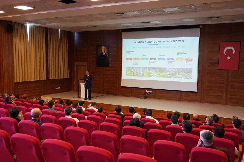 Bartın Üniversitesi (BARÜ) Kutlubey Yerleşkesinde gerçekleştirilen toplantıya kamu kurum ve kuruluşlarından yöneticiler, iş dünyasından ve sivil toplum kuruluşlarından temsilcilerin aralarında bulunduğu çok sayıda kişi katıldı.