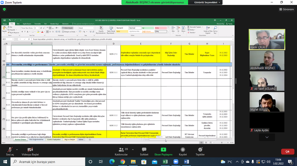 Daire Başkanımız Kadir ÇELİK’ in Başkanlığında 2022-2024 Yılı İç Kontrol ve Standartları Uyum Eylem Planı hazırlık çalışmaları toplantısı gerçekleştirildi.